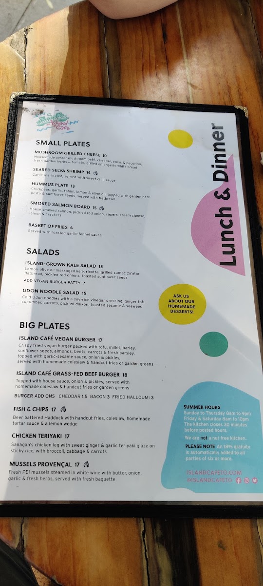 Introducing the menu at The Island Greek Grill, located in the heart of Toronto, is a delightful culinary journey through Greece. The small plates, such as the Mushroom Grilled Cheese and Seared Selva Shrimp, ignite the palate, while the Hummus Plate and Smoked Salmon Board offer a refreshing start to any meal.
